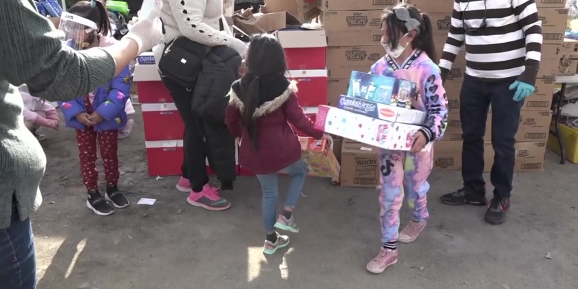 Children from a low-income Mexico border neighborhood in Tijuana received toys and other gifts on Saturday to help bring a smile to those who've endured a harsh and destitute Christmas.