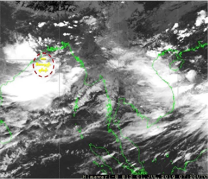 According to the observations at (1:30) Pm Myanmar Standard Time on Monday, the low pressure area over the Northwest Bay of Bengal & adjoining areas of Odisha(India) still persists.