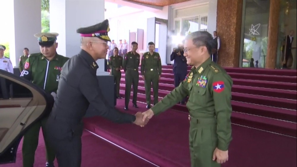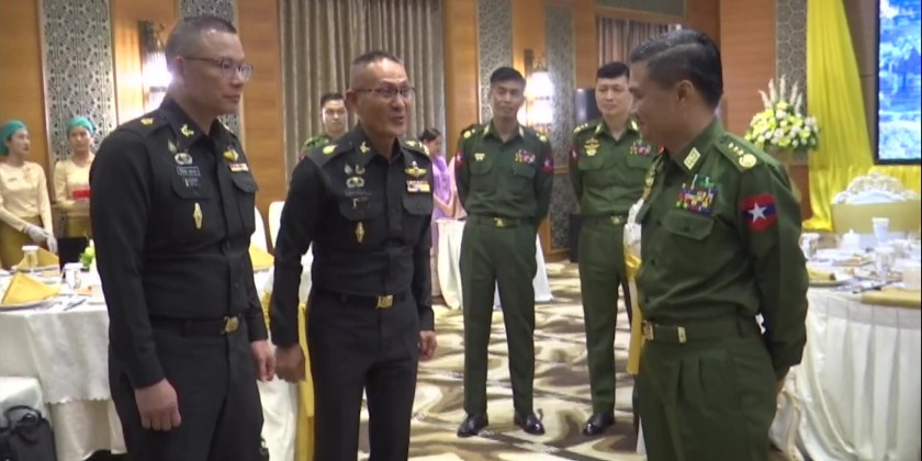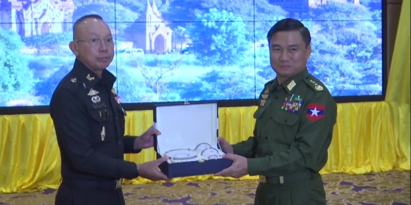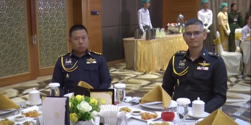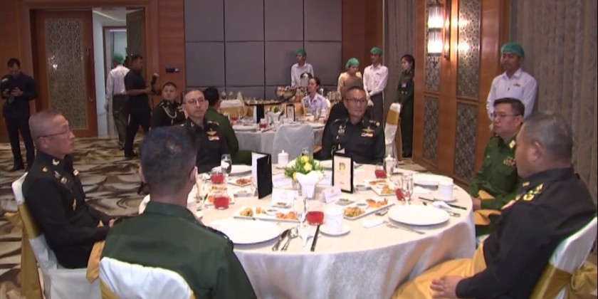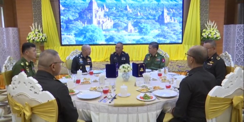 Upon the arrival of the delegation led by the Commander in Chief of Royal Thai Armed Forces at Jasmine Hotel, Member of State Security and Peace Commission Chief of General Staff (Army, Navy, Air)welcomed and hosted them with a luncheon.Following the welcome, the Commander in Chief of Royal Thai Armed Forces and SSPC member Chief of General Staff (Army, Navy, Air) exchanged commemorative gifts.Attending the luncheon alongside the Commander in Chief of Royal Thai Armed Forces were senior officers from the Royal Thai Armed Forces.