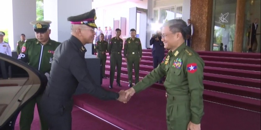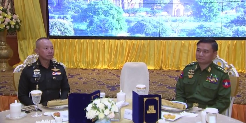 Member of State Security and Peace Commission Chief of General Staff (Army, Navy, Air) General Kyaw Swa Lin hosted a luncheon in honor of the Commander in Chief of Royal Thai Armed Forces General Ukris Boontanondha and his delegation at Jasmine Hotel in Nay Pyi Taw in the afternoon of March 18th.