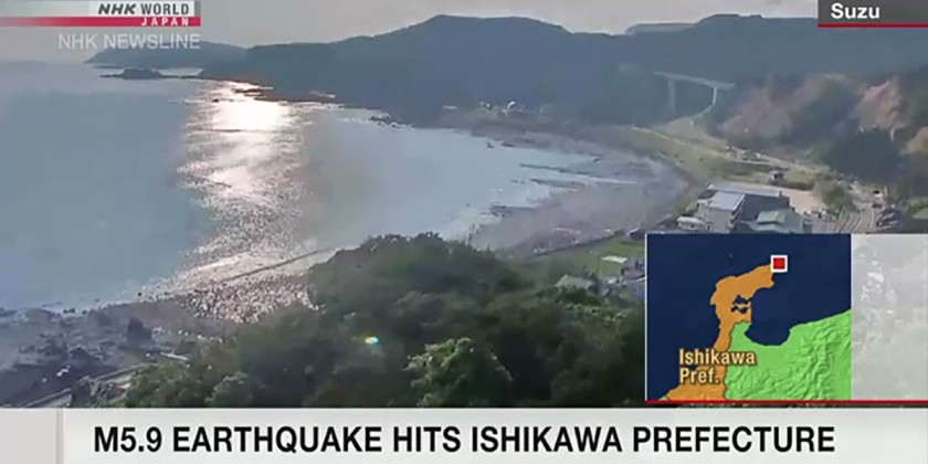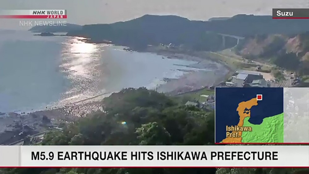 The Japan Meteorological Agency said an earthquake with a magnitude of 5.9 has hit Ishikawa Prefecture. There is no threat of tsunami. The quake struck at around 6:31 a.m.