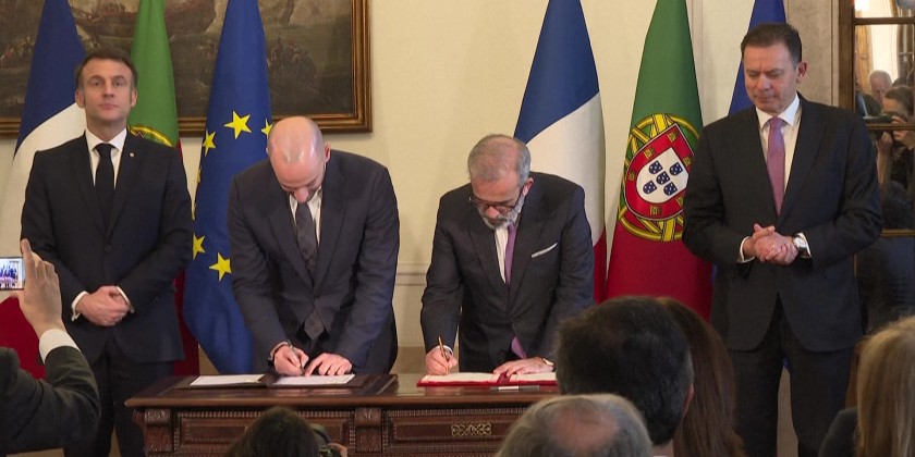 French President Emmanuel Macron signed bilateral agreements with Portuguese Prime Minister Luis Montenegro at Porto City Hall during an official ceremony, shortly after the mayor presented him with the keys to the city. This official trip, the first by a French head of state for more than a quarter of a century, was intended by the Elysée Palace to ‘mark the depth and density of the ties’ between the two countries.