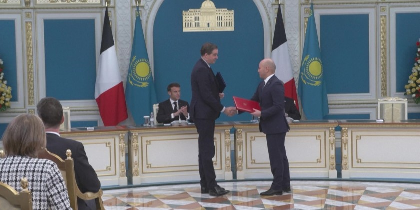 Kazakhstan's president said France was his country's "key and reliable partner in the EU" and that he wanted to give their partnership "extra impetus". The two leaders signed a series of contracts in sectors ranging from minerals and energy to pharmaceuticals and aerospace.