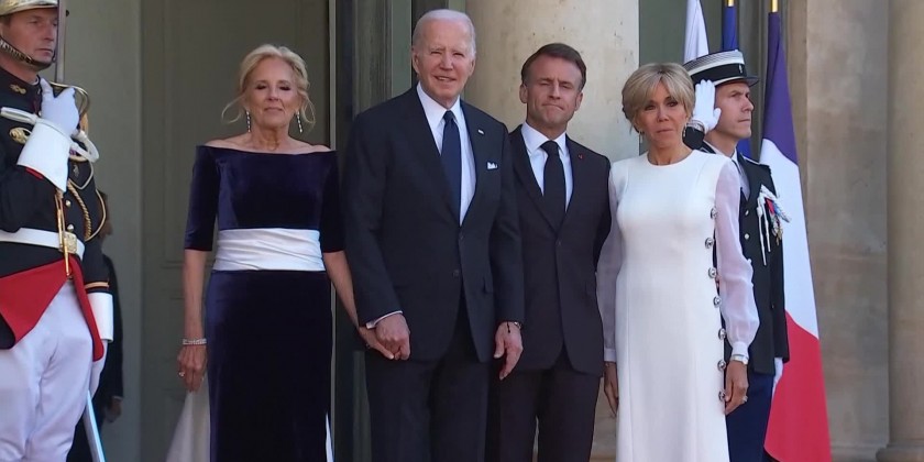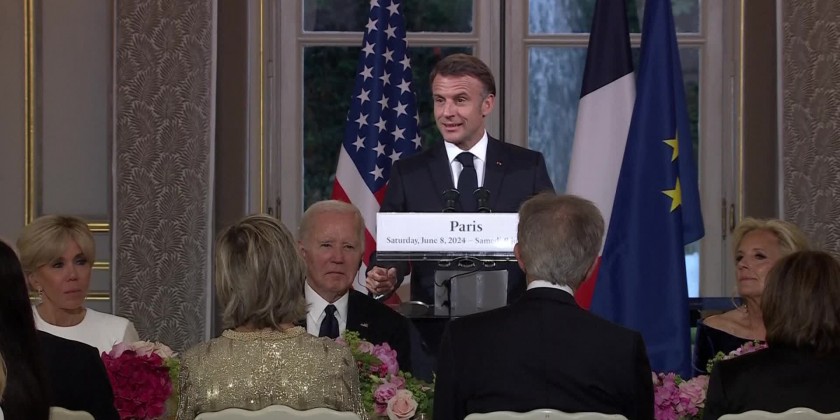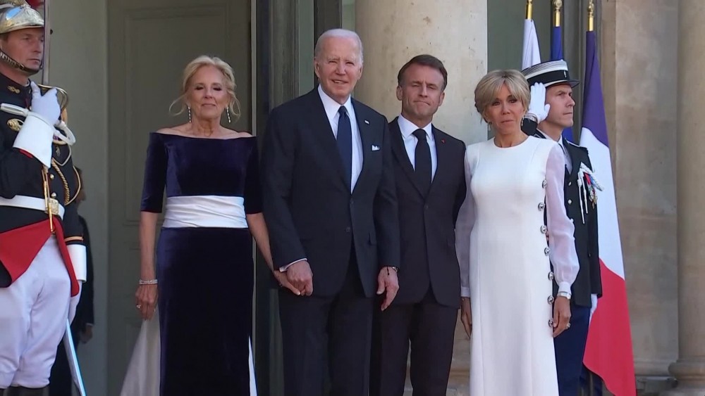French President Emmanuel Macron welcomed US President Joe Biden to a state dinner in Paris on Saturday.