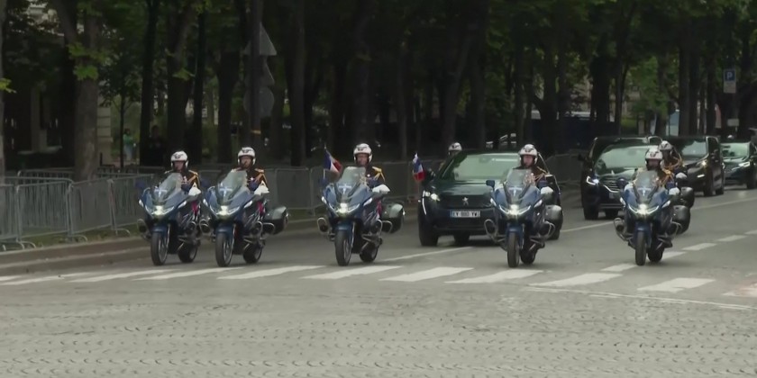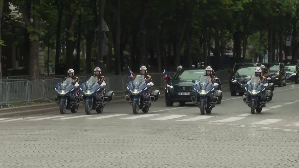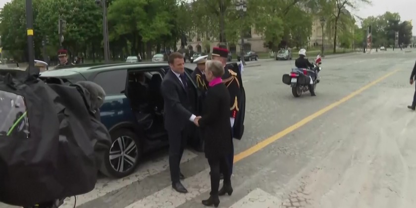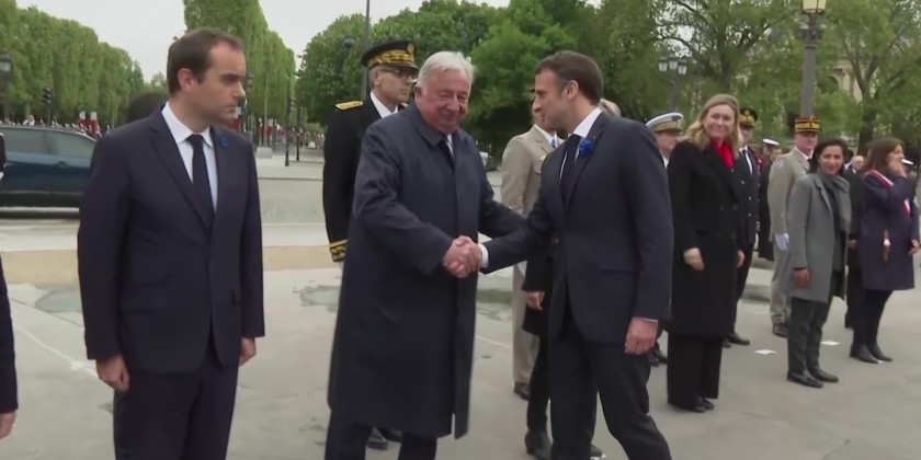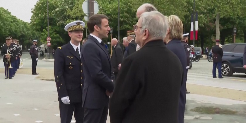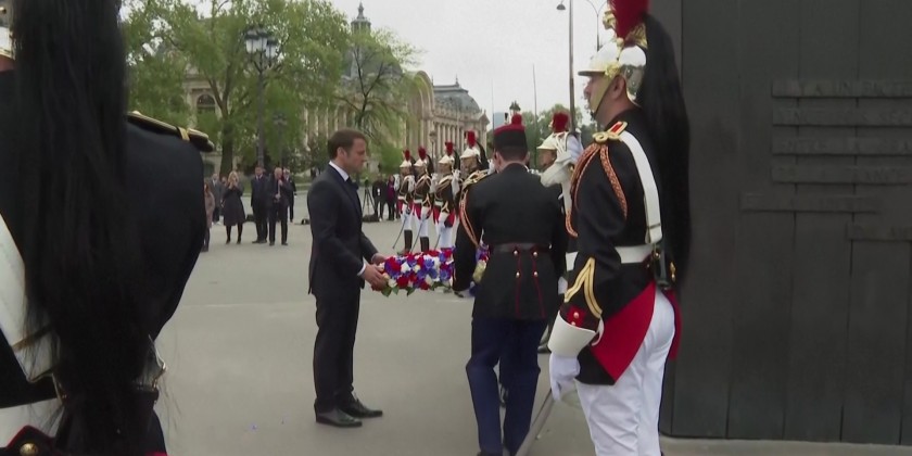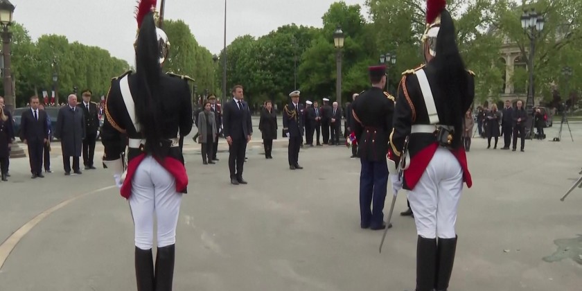 French President Emmanuel Macron attended a wreath laying ceremony Monday marking the 78th anniversary of the victory against the Nazis and the end of the World War II in Europe. The wreath was placed at the foot of the statue of General de Gaulle in Paris, Monday. Also attending was French Prime Minister, French Defense Minister and other officials.
