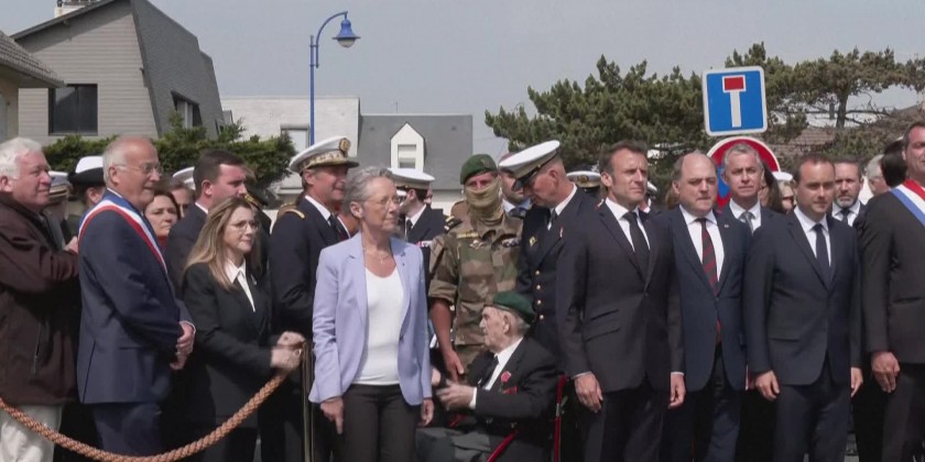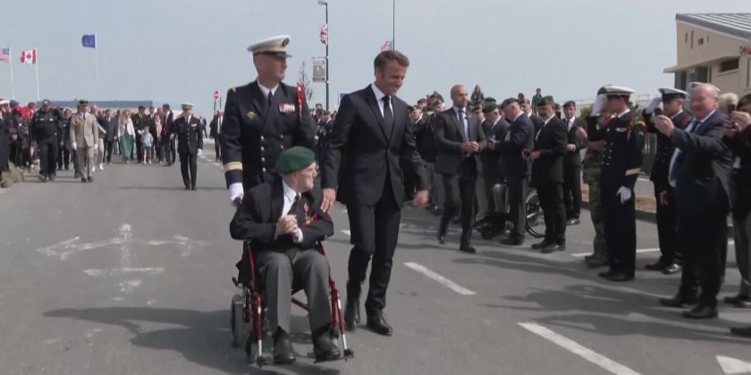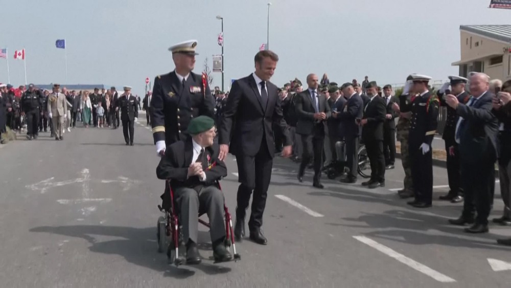 French President Emmanuel Macron pays tribute to the 177 Frenchmen who landed in Normandy on 6 June 1944 alongside the Allies.