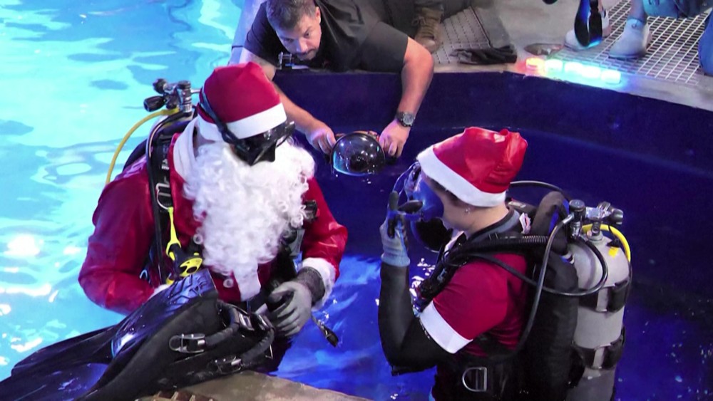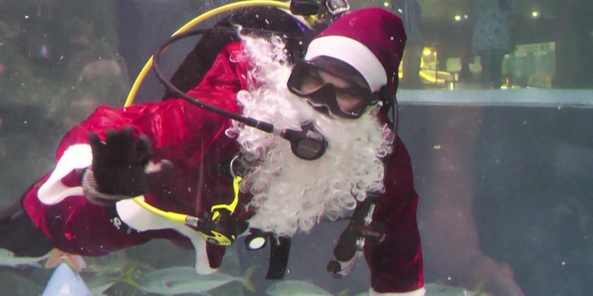 At AquaRio of Rio de Janeiro in Brazil, the magic of Christmas took an underwater twist as Santa and Mrs. Claus plunged into the massive tank, dressed in their iconic red suits and carrying oxygen tanks and long flippers.