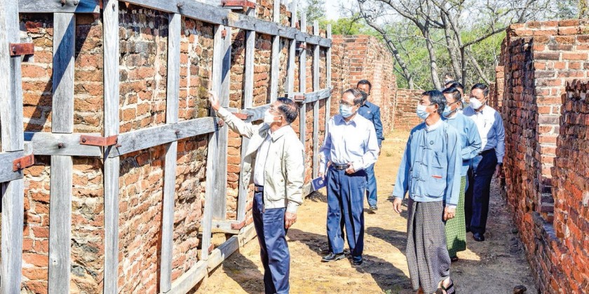 Chairman of the State Administration Council Prime Minister Senior General Min Aung Hlaing and wife Daw Kyu Kyu Hla and many other high ranking officials on Wednesday visited the ancient city of Beikthano.