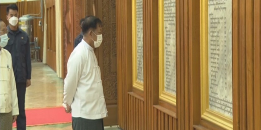 It is necessary to repair the historic buildings of other religions. After inspecting the damaged parts of the cave, the Senior General paid homage to the Buddha image from the top stairs. The Senior General gave guidance for systematic maintenance after inspecting the halls on Hantha Thiri Hill where State Ovadacariya Sayadaws and members of the Sangha Maha Nayaka Committee reside.