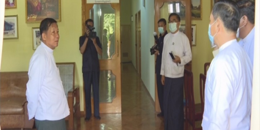 Union Minister for Religious Affairs and Culture U Ko Ko and officials reported on the brief history of the cave, damaged parts and renovation process. In his response to the reports, the Senior General gave necessary instructions regarding the renovation works of the cave. It is necessary to divide the tasks into sectors for carrying out fully renovation of Maha Pasana Cave.