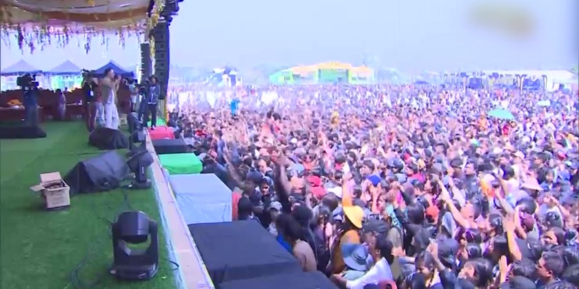 The pavilion is bustling with visiting public. Similarly, the Nay Pyi Taw Walking Thingyan features traditional Myanmar thanaka and lahpet festival pavilions, ahtamanè pavilion, ministry-specific Thingyan pavilions, entertainment pavilions, and Satuditha (charity feast) pavilions, as well as food stalls and playgrounds with water slides for children. It is crowded with visitors. Furthermore, at the Nay Pyi Taw Walking Thingyan held at the Nay Pyi Taw People's Square, renowned artists and vocalists, along with artists from Belarus and K-pop singers from South Korea, are performing lively, crowd-pleasing songs in conjunction with DJ music bands.