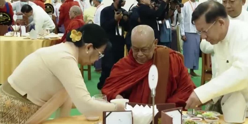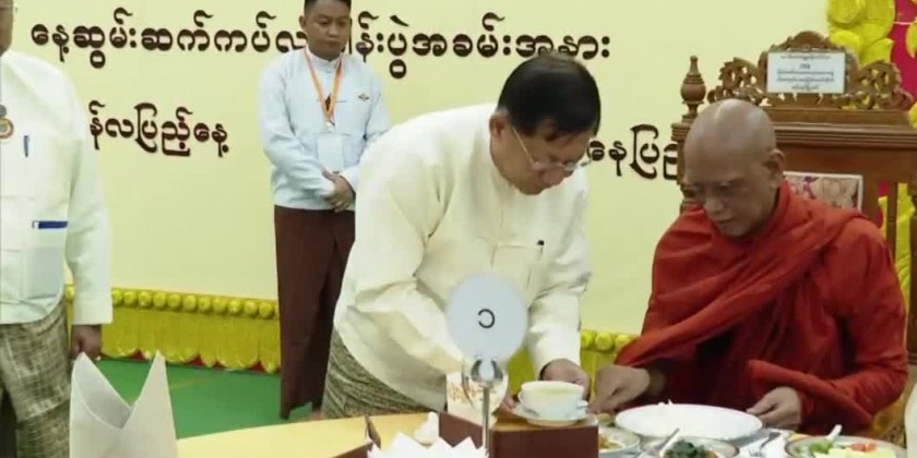 After that, the Chairman of State Administration Council Prime Minister Senior General Min Aung Hlaing and wife Day Kyu Kyu Hla and officials offered the day meal to the members of Sangha led by the Chairman of State Sangha Mahanayaka Committee, Presiding Sayadaw of Thanlyin Township Min Kyaung, it’s learnt.