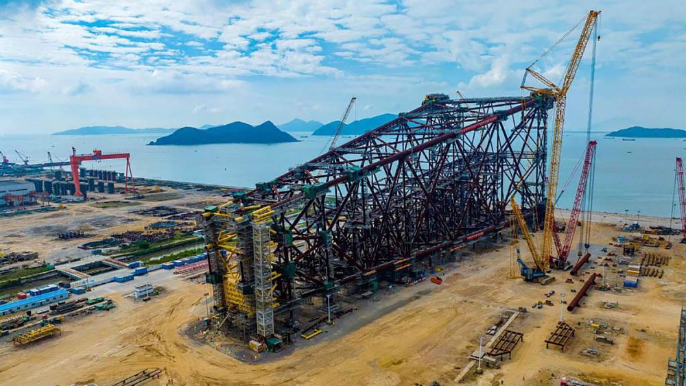 The completed platform will become the tallest offshore oil and gas production platform in Asia, with a total height of 428 meters and total weight exceeding 50,000 tons.