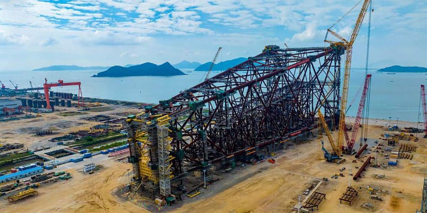 The main structure of Haiji-2, Asia's largest deepwater jacket designed and built independently by China National Offshore Oil Corporation (CNOOC), was completed on Tuesday in Zhuhai, south China's Guangdong Province, said CNOOC, the country's top offshore oil and gas company.