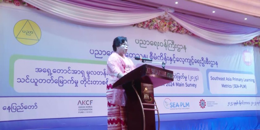 The Main Survey of the Southeast Asia Primary Learning Metrics (SEA-PLM) 2024 Assessment and Evaluation Research Project was launched on Saturday. Union Minister for Education Dr. Nyunt Pe attended the ceremony, held at Mingalar Thiri Hotel in Zabuthiri Township of Nay Pyi Taw.