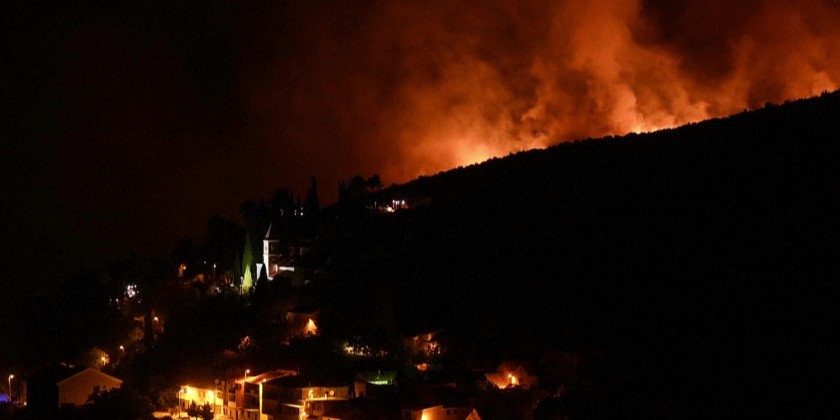 A major wildfire that had been contained after ravaging 700 hectares of land in the area around the port city of Split in southern Croatia on Wednesday. The fire is raging near the village of Donje Sitno. Some 250 firefighters, with 80 tanker vehicles, are on the ground to protect homes from the fire, according to the regional fire brigade.
