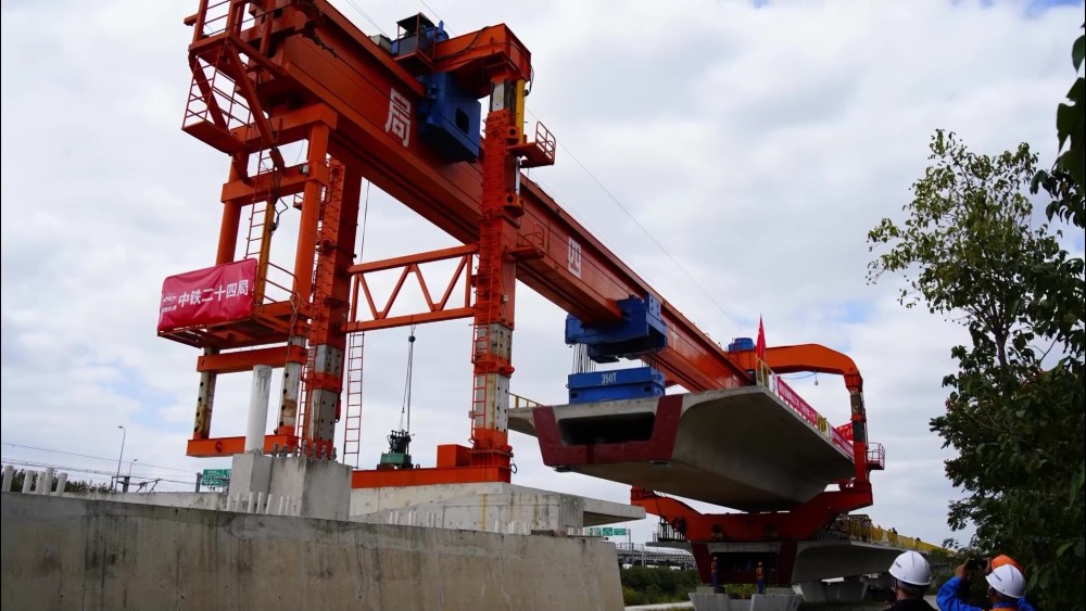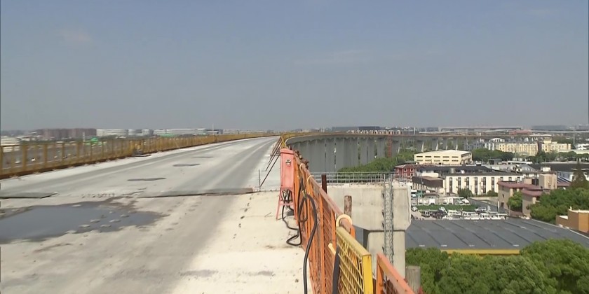 With the last 32-meter-long girder put in place, the starting section of the airport link was completed. So far, the main structure of Shanghai airport link line has been successfully completed.