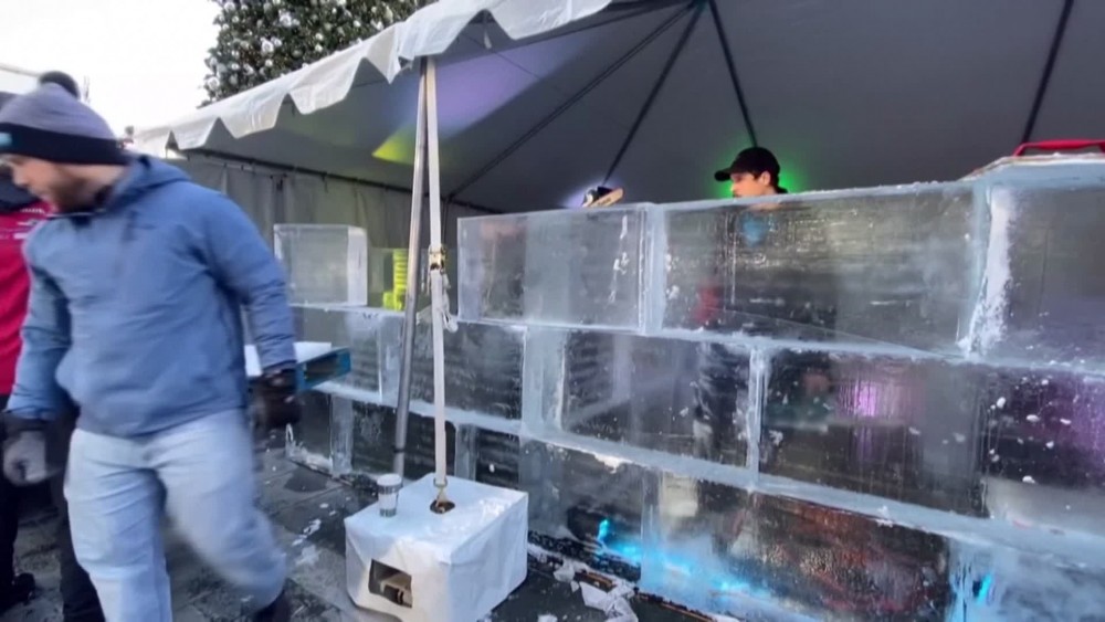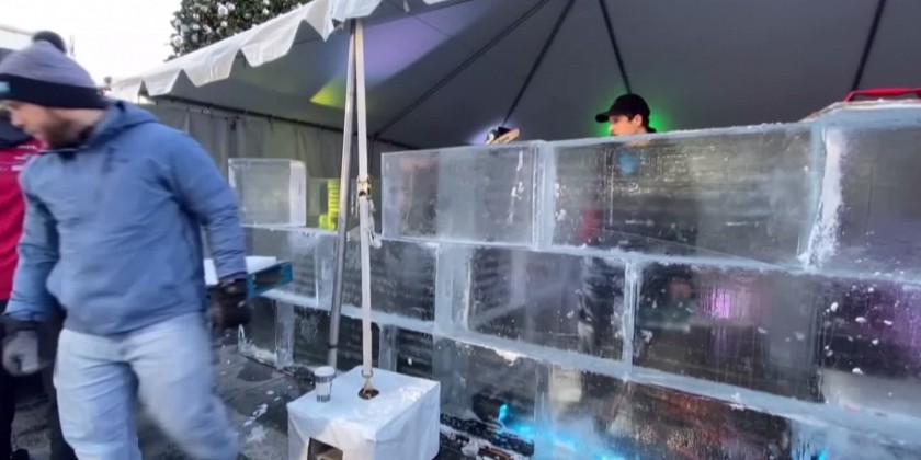 A frozen ice maze with seven foot high walls is coming to downtown Washington. On Thursday afternoon, a team of workers buffed, polished and sawed large blocks of ice to form what organizers say will be the largest maze made of clear ice in the United States. The installation uses approximately 300 blocks of crystal clear ice and weighs around 125,000 pounds.