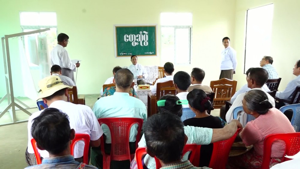 Union Minister for Cooperatives and Rural Development U Hla Moe together with the Deputy Minister and officials met with the member farmers of Shwe-Wah-Tun (2) Agricultural Production Cooperative Society and Rainbow Cooperative Society and responsible persons for UniSeimer Co., Ltd at Yone-Taw Village of Lewe Township in the afternoon on Thursday and heard the clarification of an officials from UniSeimer Co., Ltd regarding with the collaboration of the cooperative society and company in the cultivation and production of cotton, rice, black gram, groundnut, green gram, millet and corn.