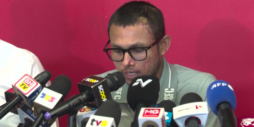 A Malaysian footballer badly hurt in an acid attack in May. He pledged to return to football in "one to two months" on Thursday, during the press conference. Selangor FC winger Faisal Halim suffered fourth-degree burns on his neck, shoulder, hands and chest in the attack at a shopping center outside Kuala Lumpur. He spent three weeks in hospital and had multiple surgeries for the burns to his skin. Two people were arrested after the attack but both were released without any charge. It is unclear what was behind the assault. Faisal's case was the most serious and high-profile of a string of crimes against four top-flight Malaysian footballers in May.
