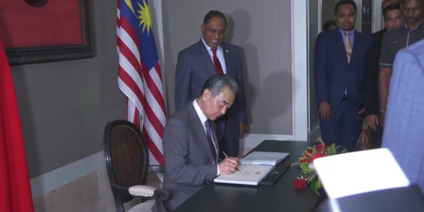 Earlier Friday, Wang arrived in Malaysia, the second leg of his current three-nation tour, which has already taken him to Singapore and which also includes Cambodia. He also met with his Malaysian counterpart.