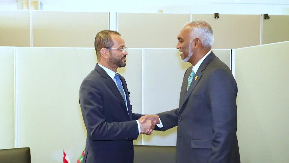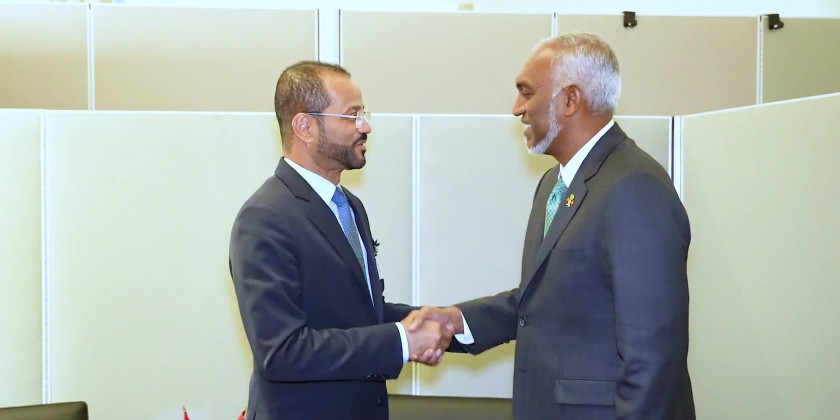 Maldives President Mohamed Muizzu met with SayyidBadr Al-busaidi, Foreign Minister of the Sultanate of Oman and Head of Delegation to UNGA 79, on the sidelines of the 79th United Nations General Assembly.
