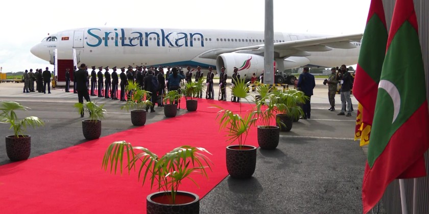 A ceremonial welcome was held at the airport, featuring a guard of honor and a cultural performance by Maldivian students to mark the 60 years diplomatic ties between Maldives and Sri Lanka.