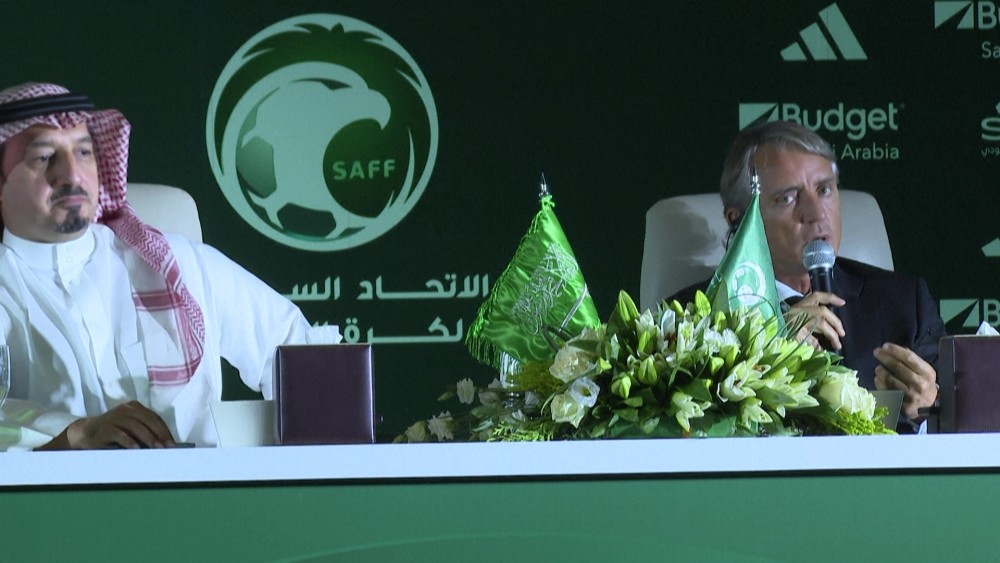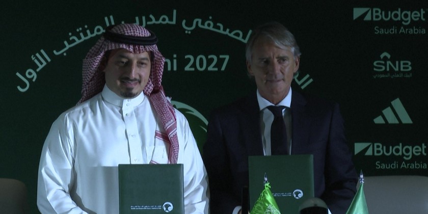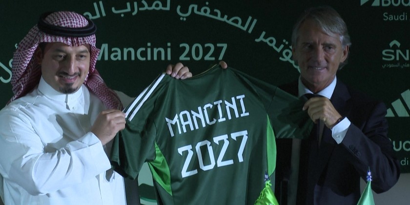 The former Inter Milan and Manchester City boss held up a green shirt that read "Mancini 2027" after inking a contract to stay with the Green Falcons beyond the next World Cup.