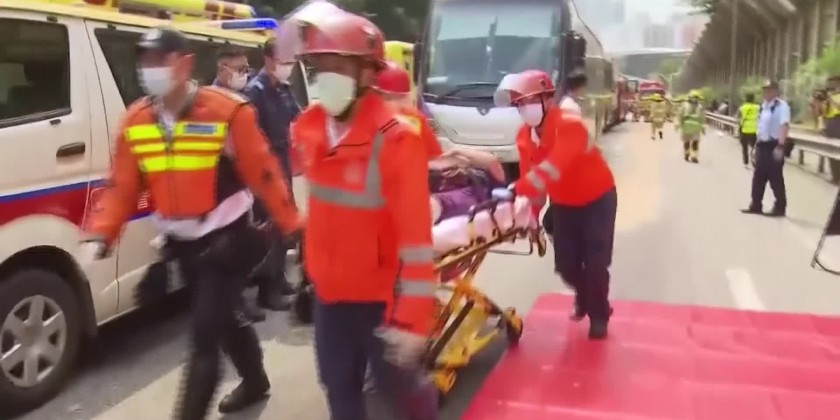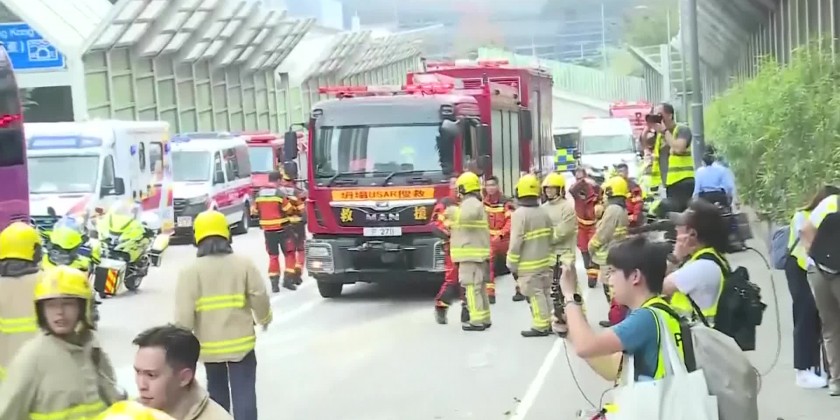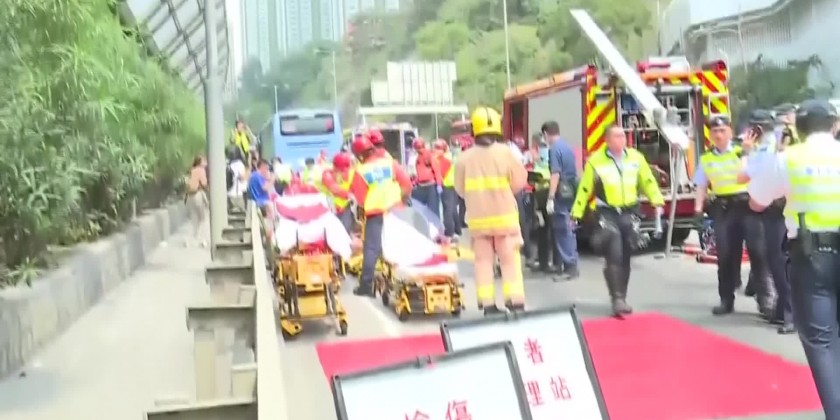 The accident occurred after midday near a tunnel entrance on Tseung Kwan O Road in Lam Tin, a residential area in Kowloon. Some 60 people sustained light injuries and around nine others suffered more serious injuries, police said.It was unclear what caused the collision.