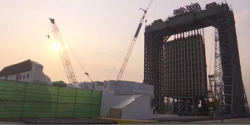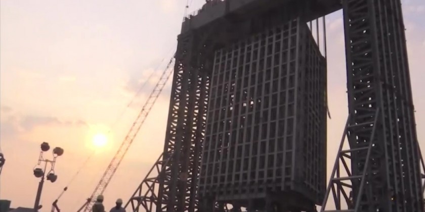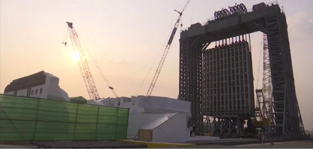 At present, the Buddha Image and its steel cover cage which have a total of 2,367.5 ton, is being raised up by 8 steel tower cranes, and the process for conveying of the Buddha Image onto the Yadana Throne will be continued according to the procedures.