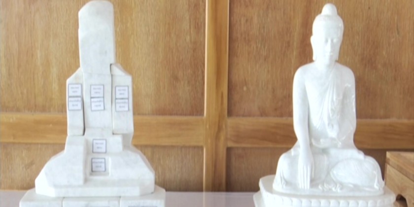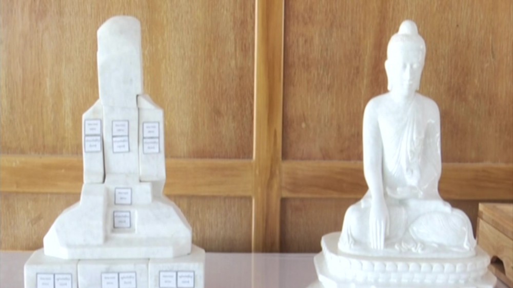 They also observed the miniature models of the buildings and sample books of Pitaka Scriptures in Pali and Romanize Language versions. The Prime Minister and party then inspected the completion of Mara Vijaya Buddha Image and throne, retainable wall, stone inscripture buildings, Thudhamma Prayer Hall and Muchalinda Lake. Upon completion, the Mara Vijaya Buddha Image will be the largest and highest Marble Buddha image, not only in Myanmar but also in the world.