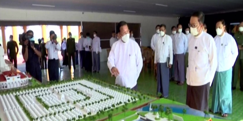 Chairman of the State Administration Council Prime Minister Senior General Min Aung Hlaing inspected the work progress of the Mara Vijaya Buddha Park in DeckhinaThiri Township of Union Territory in Nay Pyi Taw on Thursday.