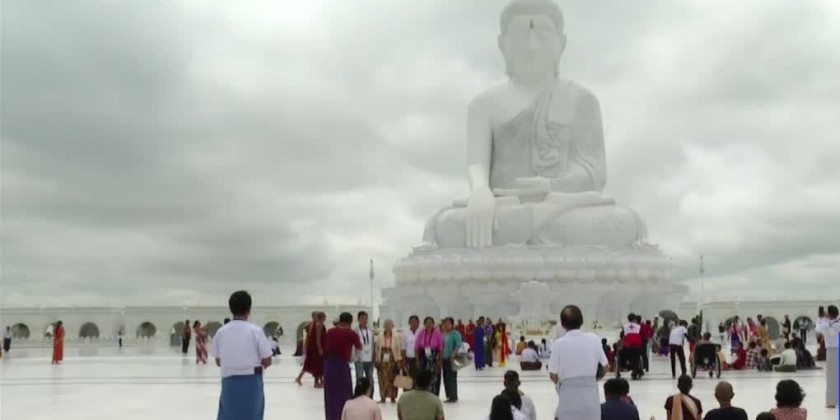 The Maravijaya Buddha Image, the tallest of its kind globally and situated within Nay Pyi Taw’s Buddha Park, is packed with the crowds of pilgrims.