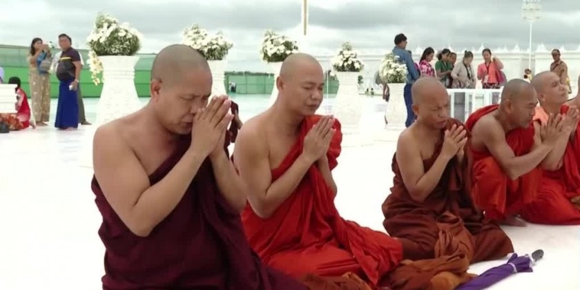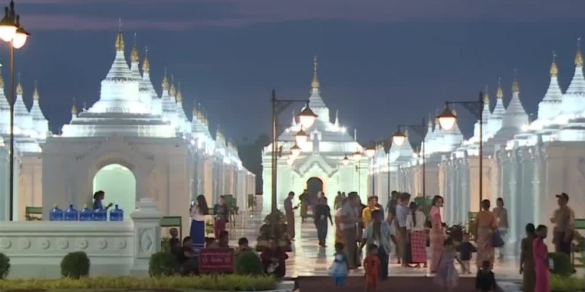 On 28th August, the pilgrims from the various parts of the country including the monks and elders paid obeisance to the Maravijaya Buddha Image, 720 stone plaque chamber pagodas, Thudhamma public houses, Muslinna Nagayon Buddha Image and observed the water fountain square, Maravijaya monastery, Agga Dhipati Sasana Beikman, Saddadhipati Bell, other religious edifices, Bridge, Garden in the Buddha Park peacefully in the mind, practice meditation, recite the religious verses by the Wut Associations and offered the cash donation.