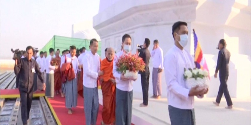 Members of the Sangha led by Chairman of the State Sangha Maha Nayaka Committee Mandalay’s Bhamo Monastery Presiding Sayadaw Dr Bhaddanta Kumara Bhivamsa and Chamcellor of Sitagu International Buddhist Academies Shwegyin Nikaya Chairman Shwegyin Sangharaja Sitagu Sayadaw Dr Bhaddanta Nyanissara together with well-wishers led by leading donor State Administration Council Chairman Prime Minister Senior General Min Maung Hlaing attended the ceremony.
