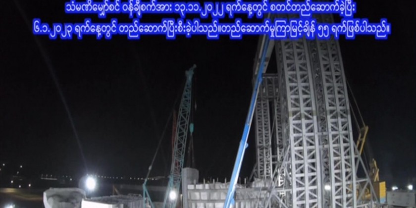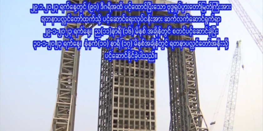 The total conveyed distance was 81-ft and it took about 11 hours and 1 minute. Myanmar Engineering Council and military engineers took seven months in building a steel tower installed with eight cranes to lift up the image to be placed onto the throne after combining the carved parts of the image and building a steel basket for conveying the image to avoid damage, using some 3,800 tonnes of iron wares.