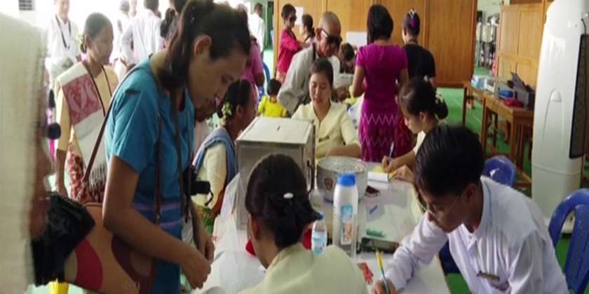On Sunday, pilgrims paid homage to the Buddha Image and tour the Buddha Park, generously making donations. Health staff provide healthcare services to monks, nuns, and senior citizens, while members of the Myanmar Red Cross Society and the Fire Brigade offer assistance to elderly individuals for their convenience.