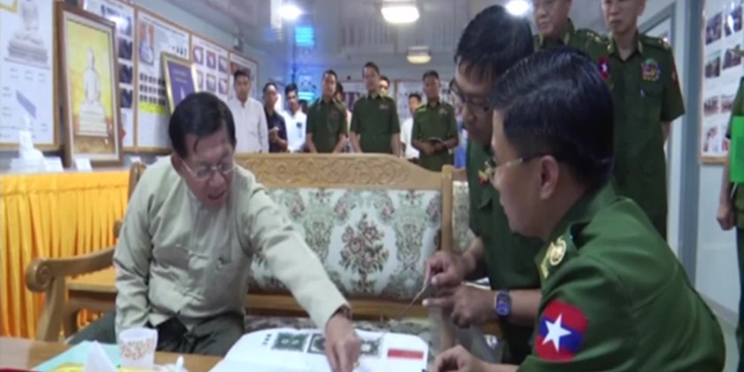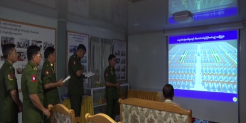 At the briefing hall, Lt-Gen Kan Myint Than from the office of Commander-In-Chief (Army) reported on progress of works, sculpturing small buddha images, progress of the construction, offering the painting robe to the Buddha Image and installation of the throne.