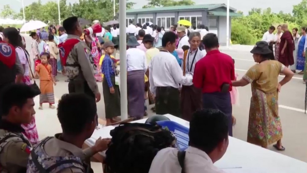 The Maravijaya Buddha Image, the tallest of its kind globally and situated within Nay Pyi Taw’s Buddha Park, is drawing crowds of pilgrims. The well-wishers are generously providing foodstuff to those visiting the pagoda.