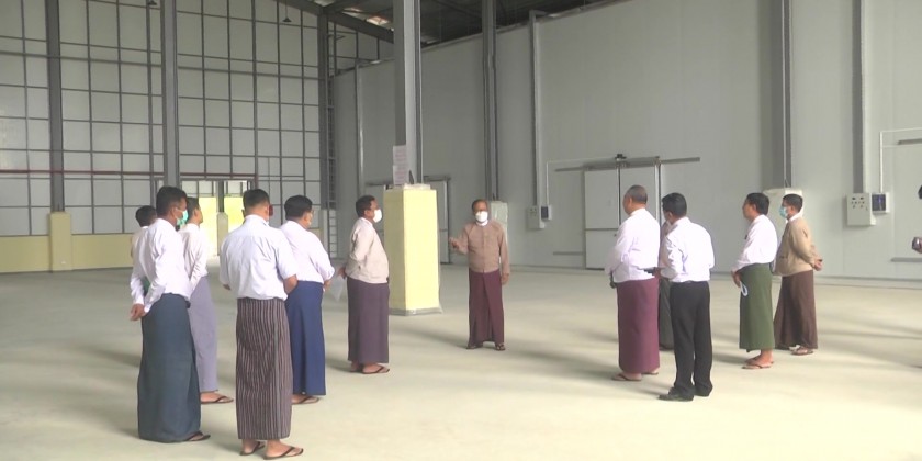 In the morning on Thursday, the Union Minister for Agriculture, Livestock and Irrigation U Tin Htut Oo and officials inspected cold storage factory near Myoma market and the site where a new market of agricultural and livestock breeding products to be sold in wholesale and retail prices will be opened and the agricultural products market center cold storage warehouse near Pubbathiri market, Nay Pyi Taw.