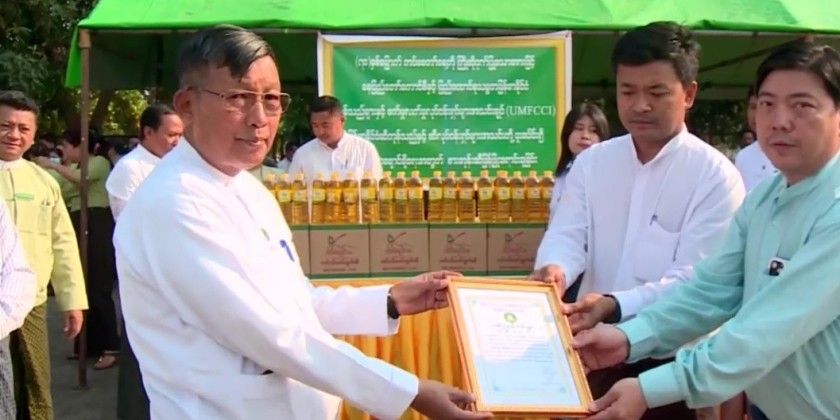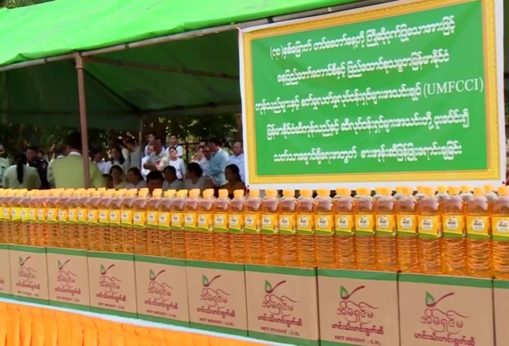 Similarly, the palm oil was sold at fair prices to staff and families of the Nay Pyi Taw Development Committee in the compound of the Nay Pyi Taw City Hall on the 24th of March. Deputy Mayor U Maung Maung and officials viewed the sale and presented certificates of honour to relevant officials of the Myanmar Edible Oil Dealers' Association.