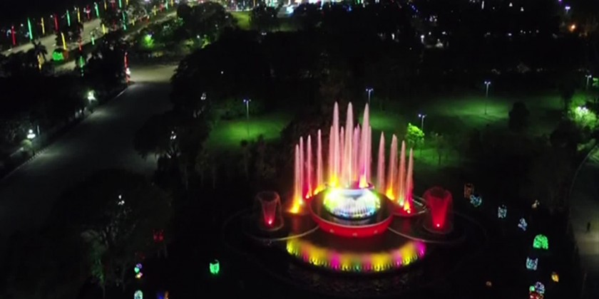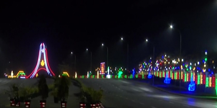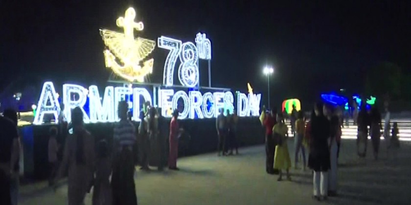 In the park, colourful lights are illuminated and it is teemed with those who take recreation. Furthermore, the colourful lights are illuminated in the respective regions and states in commemoration of the 78th Armed Forces Day and there are teemed with people taking relaxation.