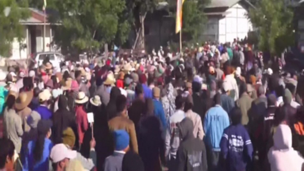Then, the participants in the mass rallies condemning the act of terrorists who destroyed the Buddhism staged the peaceful protest by shouting the slogans and holding the placards.