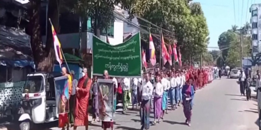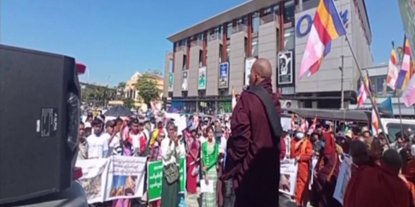 About 700 participants including the members of the Sangha and national activists, marched along Bogyoke Road to the Union Square, chanting the slogans.