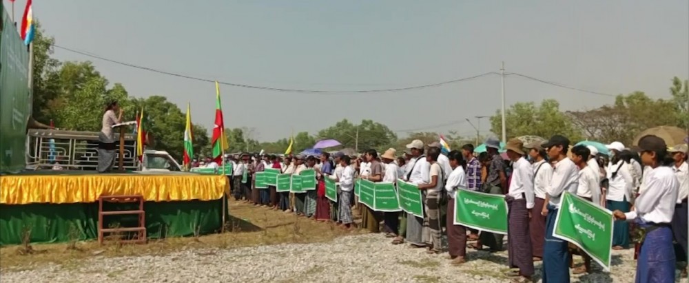 The rallies commenced by saluting state flag, followed by singing of national anthem and Zar Ti Man song together. The nationalist advocates also made discussions on the purposes of enacting People’s Military Service Law.