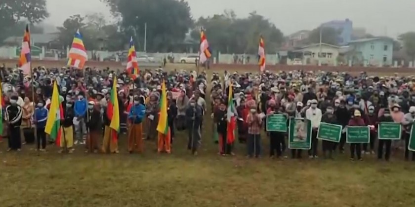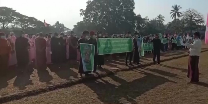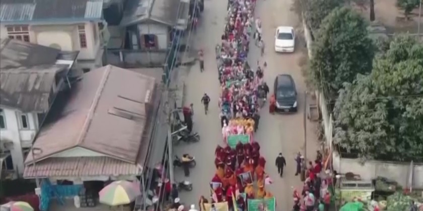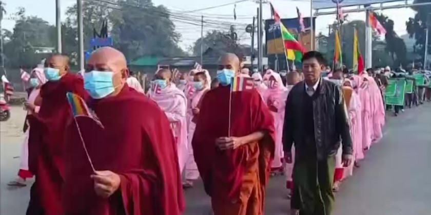 On 18th January, the protests in Tanai and Bamaw Townships of Kachin State, Mong Hsu and Kunhing Townships of Shan State (South). The mass rallies marched in gathering to the specified spots and the monks and leaders of the patriots talked condemning the act of terrorists who destroyed the Buddhism.