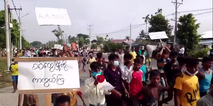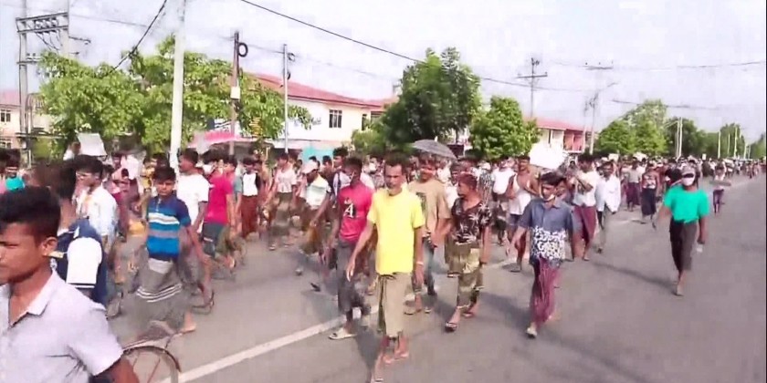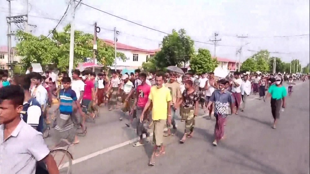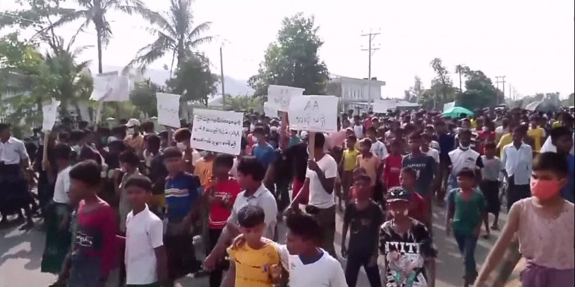 Bengalis in Sittwe Township, Rakhine State, held a mass rally on Saturday. About 1,000 Bengalis from Bumay and nearby villages in Sittwe Township gathered at the junction of Bumay Market and marched peacefully to Waithali Ground along Mayu Road, chanting slogans condemning the terrorist acts.