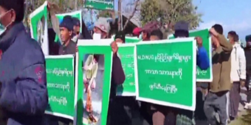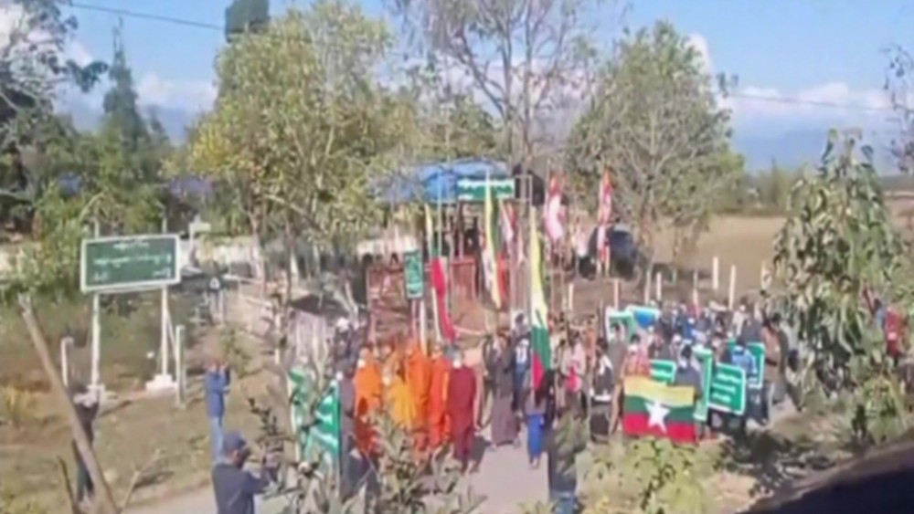 On Friday, the gathering took place in PutaO of Kachin State with the participation of members of the Sangha, nuns and national activists. During the rally, the participants gave speeches, condemning the act of terrorists, and chanted the slogans.