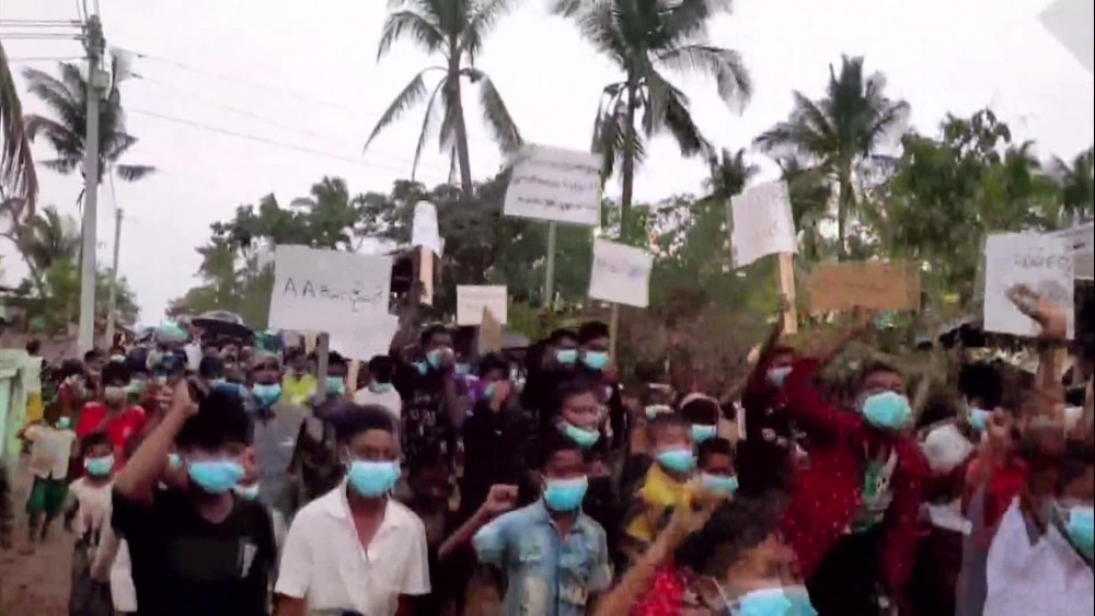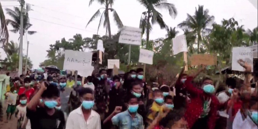 They marched to designated areas, chanting slogans in both Myanmar and Bengali languages, to condemn the terrorist activities of the AA insurgents.