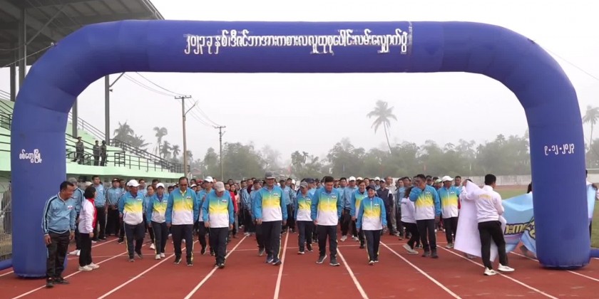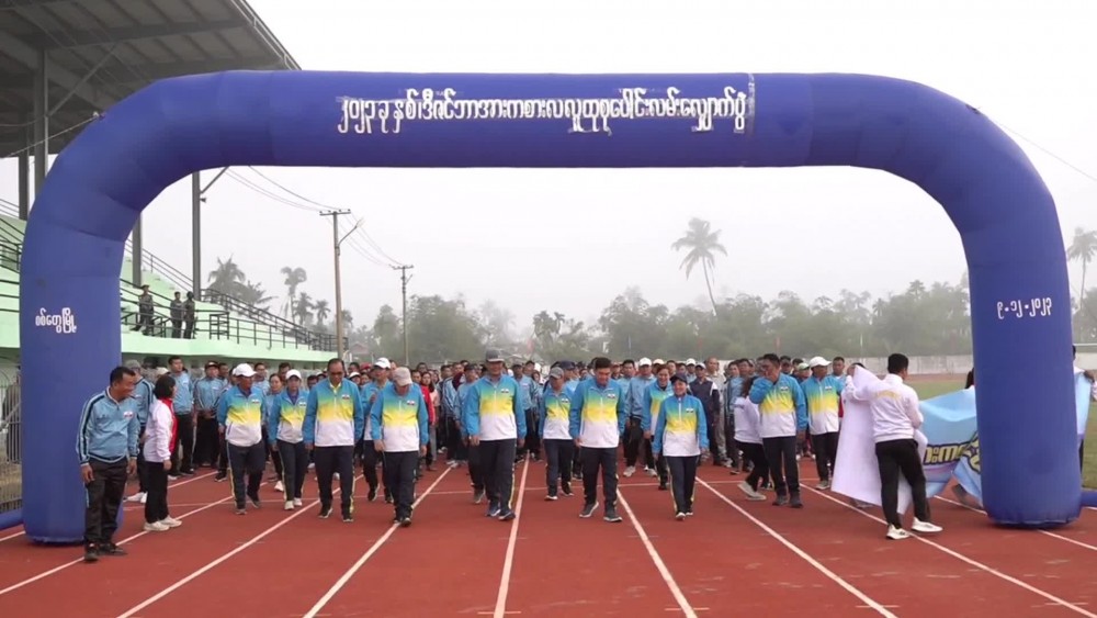 For the health and fitness of the entire nation, the December is designated as the month of mass sports activities and the mass walk, doing mass physical fitness exercises, organizing fanfairs, conducting physical fitness dancess collectively. The December mass walk was held at Dinnyawady Sports Ground in Sittwe of Rakhine State in the morning on December 9.